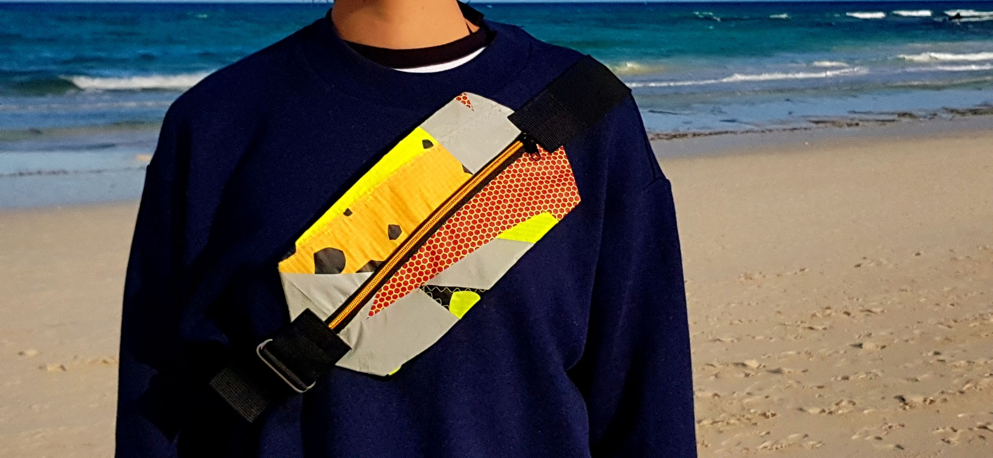 Aus dem Kitestoff nähe ich sogenannte "cropped shoulder bags". Ein stylisches feminines, wie auch maskulines Täschchen, in welches ein Portemonnaie, ein Handy, der Schlüssel der Kaugummi und vieles mehr rein passt. Das Täschchen kann um den Bauch, aber auch quer über die Brust getragen werden, so sind die Wertsachen immer schön sicher und greif nahe aufbewahrt.